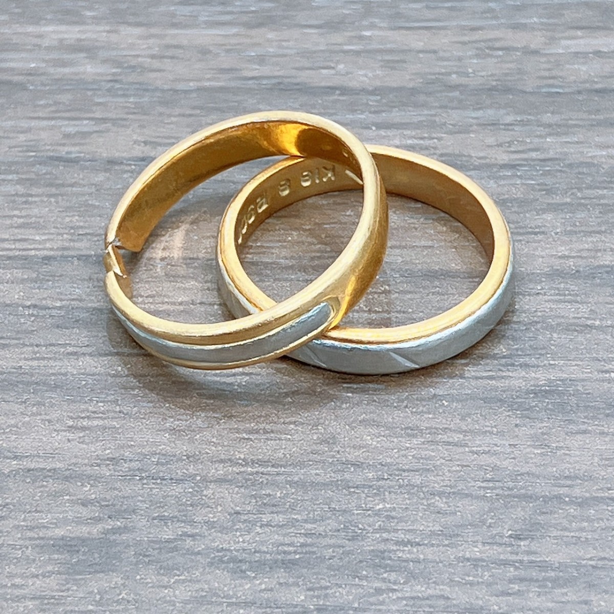 - ご覧いただきありがとうございます。<div>おたからや小倉中津口店の植波です!</div><div>今回買取させていただいたお品物はK18Pt900コンビリングまとめです!</div><div>ありがとうございます!</div><div><br></div><div>結婚指輪のイメージと言えば、素材はプラチナでシンプルなデザインのものを想像される方が多いと思いますが、今では結婚指輪の種類も豊富になり、素材もプラチナ以外にもゴールドで結婚指輪を探す方が増えてきています。その中でも近年人気なのが、プラチナとゴールド2色のマテリアルを使用したコンビリングです。コンビの結婚指輪は組み合わせる素材によって印象ががらりとかわるので、選ぶときも楽しんでいただけるのが特徴的です。今回はコンビリングについてご紹介させていただきます。 <br></div><div><br></div><div>そもそもコンビリングとは、プラチナとゴールドのように2種類の素材を1つの指輪に使っている結婚指輪の事です。プラチナとゴールドは素材が全く違うので、融点の違う金属同士を溶接しないといけないので、非常に技術のいる作業になります。熟練した職人が必要なのと手間暇がかかる点で本来は避けられます。その為、コンビリングのみのブランド展開をしているブランドも少なく、コンビリングの結婚指輪を見れるお店も限られてきます。多くのお店やブランドで、コンビリングがあるのはほんの一部でほとんどは一色のデザインのもばかりです。 <br></div><div>コンビリングの特徴は、プラチナやゴールドなど「2つ以上の素材が1つの指輪に使われている」というもの。それぞれの色彩が反射し、ダイヤや宝石を嵌め込まなくとも華やかな印象になります。 <br></div><div>今回買取させていただいたリングは最もポピュラーなコンビリング。清楚なプラチナの輝きの中にゴールドが映え、パーティーシーンにも相応しい指輪です。ダイヤを嵌め込めばさらに美しくなるものの、下品な印象はありません。 <br></div><div>その他にもプラチナとピンクゴールド、シルバーとゴールドなど様々な組み合わせの物がありバリエーションも豊富にあります。</div><div><br></div><div>いかがだったでしょうか?</div><div><br></div><div><div>当店は貴金属はもちろん、宝飾品・高級時計・ブランド品・商品券・古銭・古美術品・骨董品・切手・家電製品など多種多様にお買い取りを行っております。</div><div>新品未開封・長年ご愛用されたお品物も査定をさせていただいております。</div><div>お気軽にお越しください。</div> <br></div>