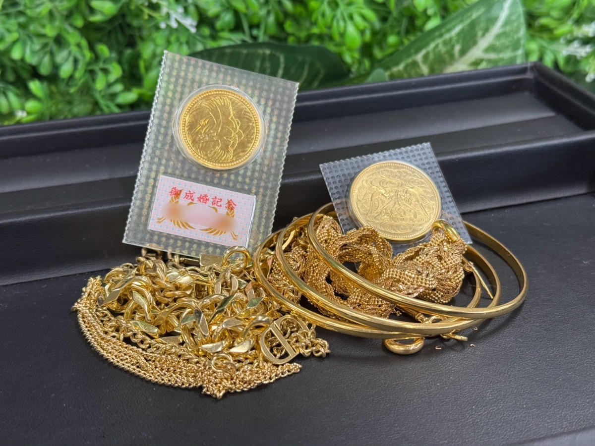 - 当店ホームページをご覧いただきありがとうございます。<div>おたからや小倉中津口店中園です。</div><div><br></div><div>今回は、北九州市小倉北区のお客様より、金貨、貴金属まとめをお買取りさせていただき有難うございました。</div><div><br></div><div>皆様、『金』と一言で言いますが、さて、詳しい知識はどんなものでしょう?</div><div>金とは貴金属の一種で、美しい輝きと希少性から古くから人類に珍重されてきた元素です。</div><div>化学記号はAuで 人類が古くから珍重してきた希少な金属です。 <br></div><div>金の歴史は、紀元前6000年頃にさかのぼります。メソポタミア文明のシュメール人が最初に金を使用したとされています。金は自然界に単体で存在するため、早くから人類に利用されました。</div><div>日本では、鎌倉時代から室町時代にかけて、金は仏像や寺院の装飾に多く用いられました。 </div><div>明治時代に入ると、日本は近代化を進めるなかで金本位制を採用しました。第二次世界大戦後、金本位制は廃止されましたが、金の資産価値は依然として高く評価されています。 <br></div><div>いかがでしたか?</div><div><br></div><div>金の価値を決める最も重要な要因は、純度です。 純度が高いほど金の含有量が多く、価値が高くなります。ただし、純度が低い合金にも耐久性や加工のしやすさといった利点もあります。また、金製品の刻印を確認すると、K24やK18などの表記で純度を確認可能です。 <br></div><div><br></div><div>金を1円でも高く売りたいなら 当店へ 相場高騰により、買取金額も大幅に上昇しています。 <br></div><div>買取金額に上乗せ還元・商品の価値を見抜くプロ査定員など、おたからやには高価買取の理由が満載です!<br></div><div><br></div><div>他にも、ブランド品はもちろん、切手・家電製品など多種多様にお買取りを行っておりますので、お気軽にお立ち寄りください。又、買取り以外にも、出張して訪問する生前整理も行っておりますので、お気軽にお問い合わせください。</div><div><br></div><div>スタッフ一同皆様のお越しをお待ちしております。</div><div><br></div><div><br></div>