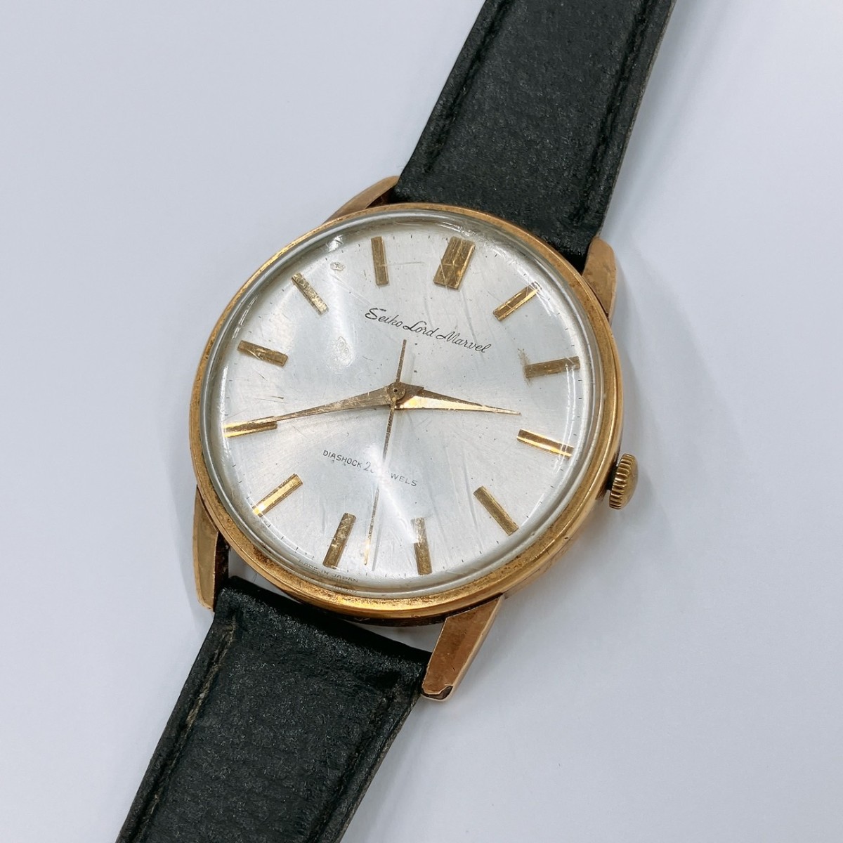 - <div>ご覧いただきありがとうございます。<div>おたからや小倉中津口店の植波です!</div><div>今回買取させていただいたお品物はセイコー ロードマーベルです!</div><div>ありがとうございます!</div> <br></div><div>『ロードマーベル』が誕生したのは1958年(昭和33年)。開発したのは戦時中に第二精工舎の疎開工場として設立された第二精工舎諏訪工場です。 <br></div><div>ちなみに、この諏訪工場は昭和17年に第二精工舎協力工場として設立された大和工業と1959年に一体化して諏訪精工舎として独立。これが現在のセイコーエプソンです。<br></div><div>大戦後、婦人用腕時計や戦後設計の新10型紳士用腕時計などを生産していた第二精工舎諏訪工場は、1950年(昭和25年)、本格的な中3針(センターセコンド)腕時計である『スーパー』を開発します。</div><div>これは近代的なスタイルでヒットしましたが、精度的には不満がありました。そこで『スーパー』の地板径を拡大し、地板と受けの軸受の穴の位置のズレを補正し、歯車形状を修正して加工時の歪みを抑え強度を上げるなどの全面的な改良を加えて誕生したのが、1956年に開発された『マーベル』です。 <br></div><div>『マーベル』は、従来製品とは比較にならないほど精度が高かったが、この素性の良いムーブメントをベースに、より高級なモデルを求めて開発された“頂点仕様商品”(実際に開発に携わった技術者が使った表現)が『ロードマーベル』でした。 <br></div><div>この『ロードマーベル』は、17~21石の『マーベル』の石数を増やして23石にアップグレードし、ぜんまいの巻き上げを司る角穴車や丸穴車には幅広い溝を彫り込み鏡面仕上げして外観上も美しさを追求しました。また、それまでのムーブメントにはなかったシリアル番号も刻印されました。 <br></div><div>手をかけたのはムーブメントだけでなく、文字板も一級品を目指したものでした。ロゴは彫り込みによるもので、時刻の指標となるバーインデックスは金属製の小さな部品をひとつひとつ固定した植字仕上げになっています。 <br></div><div><br></div><div>以上、セイコー ロードマーベルについてご紹介させていただきました。</div><div><br></div><div><div>当店は高級時計はもちろん、宝飾品・ブランド品・貴金属・商品券・古銭・古美術品・骨董品・切手・家電製品など多種多様にお買い取りを行っております。</div><div>新品未開封・長年ご愛用されたお品物も査定をさせていただいております。</div><div>お気軽にお越しください。</div> <br></div>