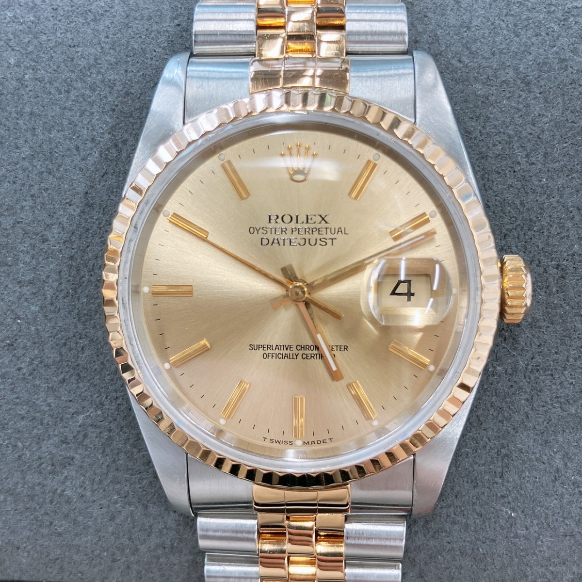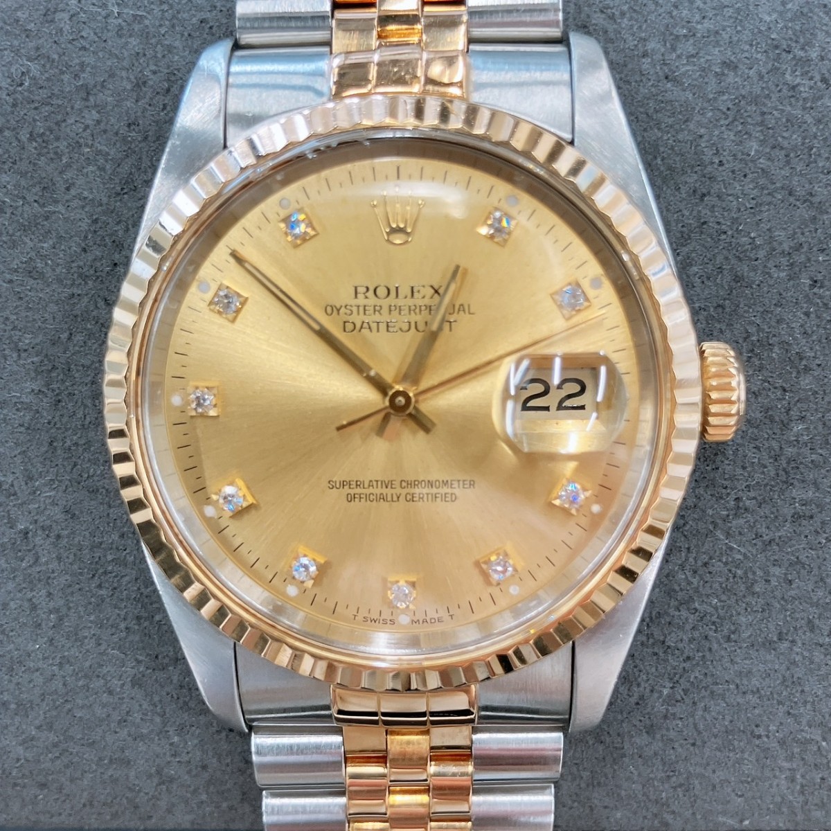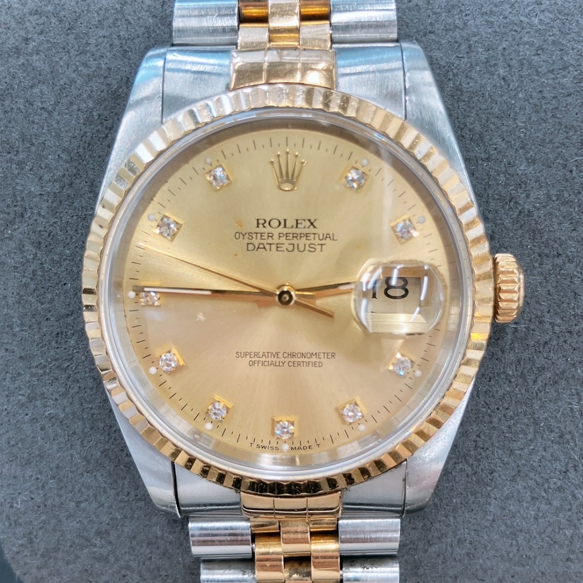 - <div>ご覧いただきありがとうございます。</div><div>おたからや小倉中津口店の相原です!</div><div>今回買取させていただいたお品物はロレックスデイトジャスト 16233です!</div><div>ありがとうございます!</div><div><br></div><div>ロレックス デイトジャスト 16233は、デイトジャストシリーズの中でも特に完成度が高いモデルとして知られています。デイトジャストの歴史は1945年に遡ります。当時、世界初となる自動日付切り替え機構を搭載した「オイスター・デイトジャスト」が誕生し、時計史に新たなページを刻みました。この革新的な仕組みにより、日付が瞬時に切り替わる機能は、実用性と技術力の象徴として高く評価されました。</div><div>
